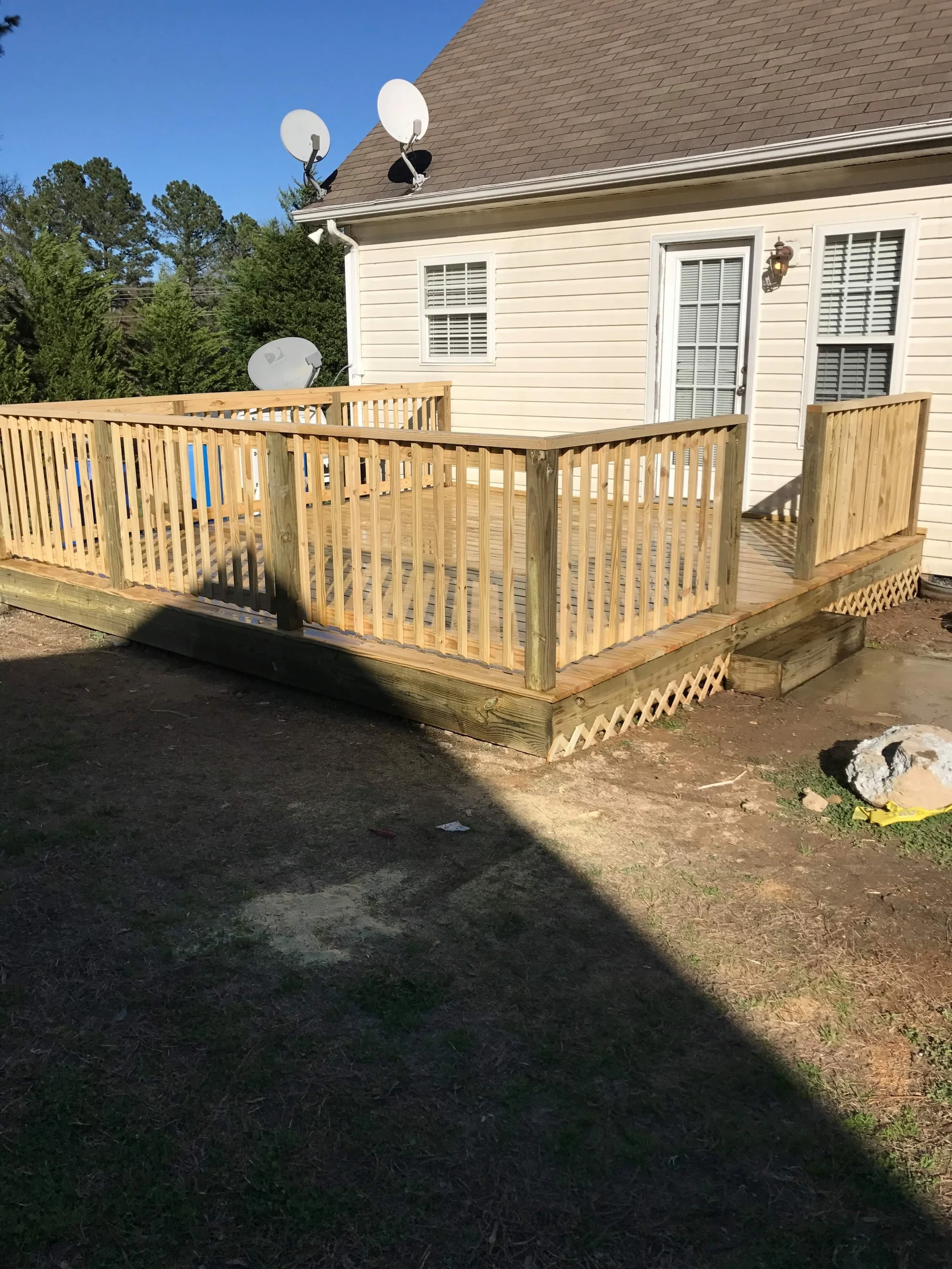 After Pic - The entire deck and supports were replaced with exterior grade wood. The deck was enlarged to fit the full size of the patio doors.